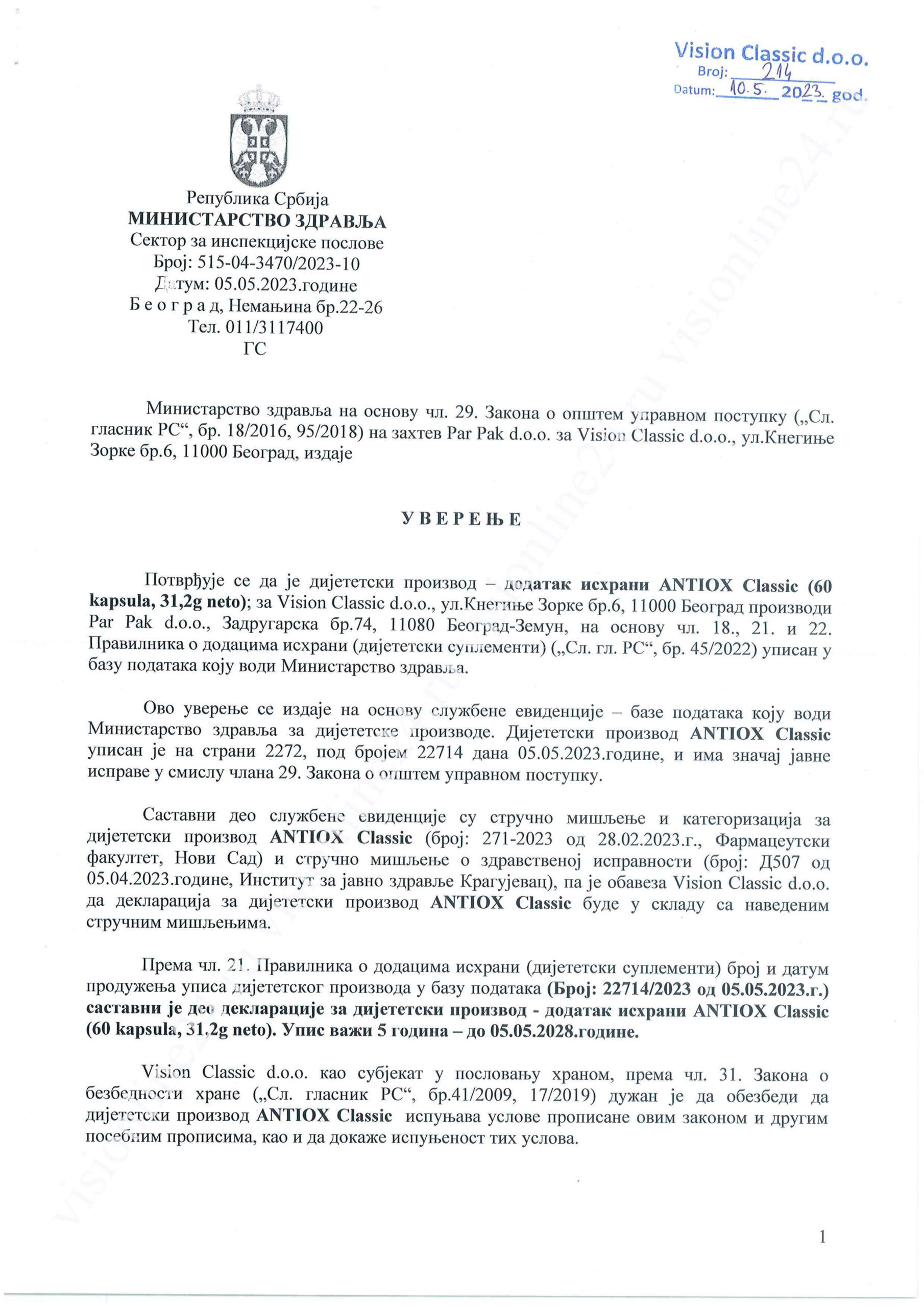 Сейчас Вы так же можете приобрести Антиокс Визион Европейского производства в Москве, который выпускается в соответствии со всеми стандартами Евросоюза и нормами GMP. Антиокс это улучшенный аналог Антиокса, с такой же европейской формулой.