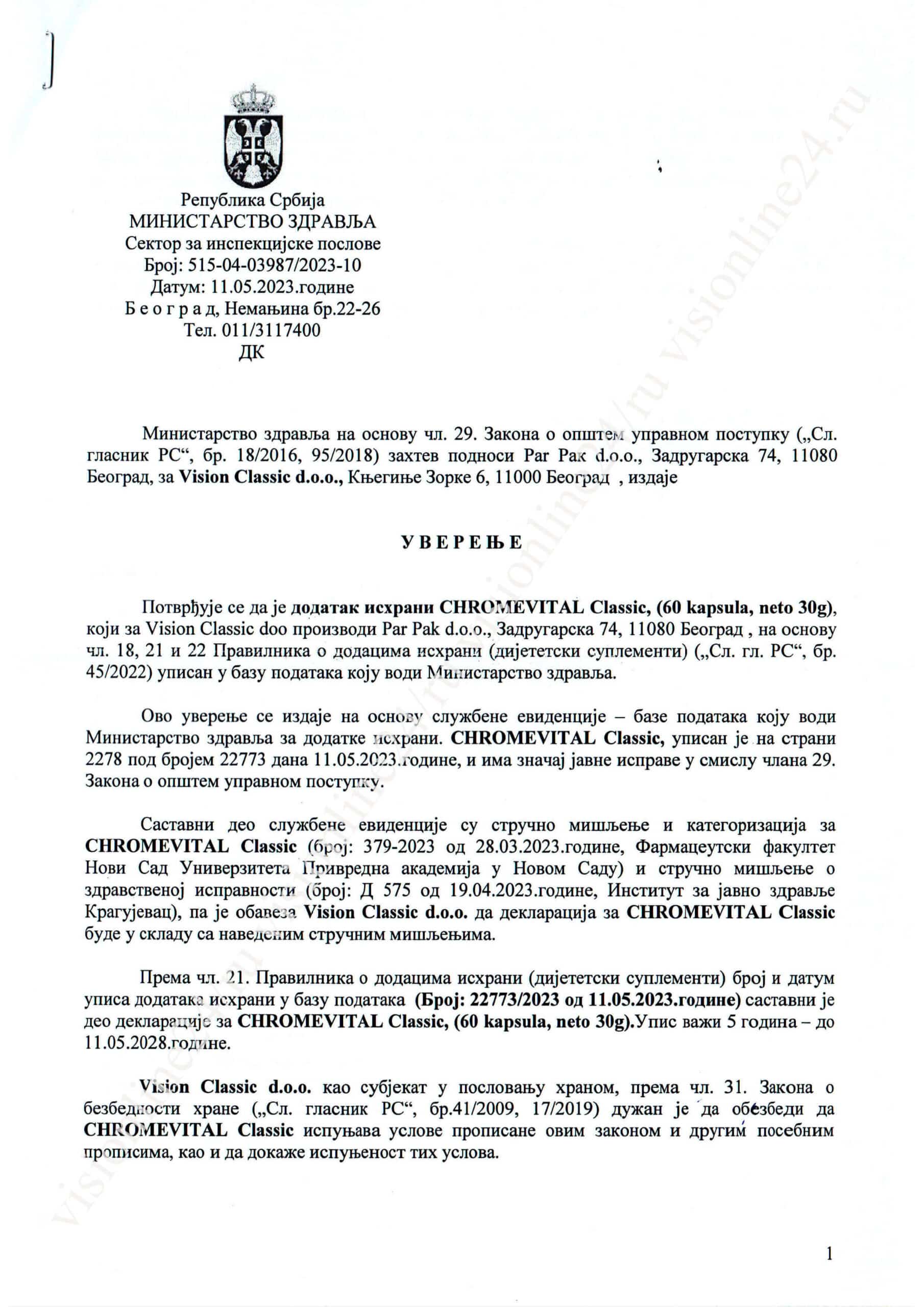 СОСТАВ ХРОМВИТАЛ ВИЗИОН: